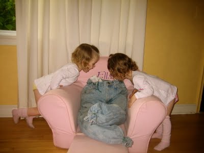 Both girls were fascinated by the pants.