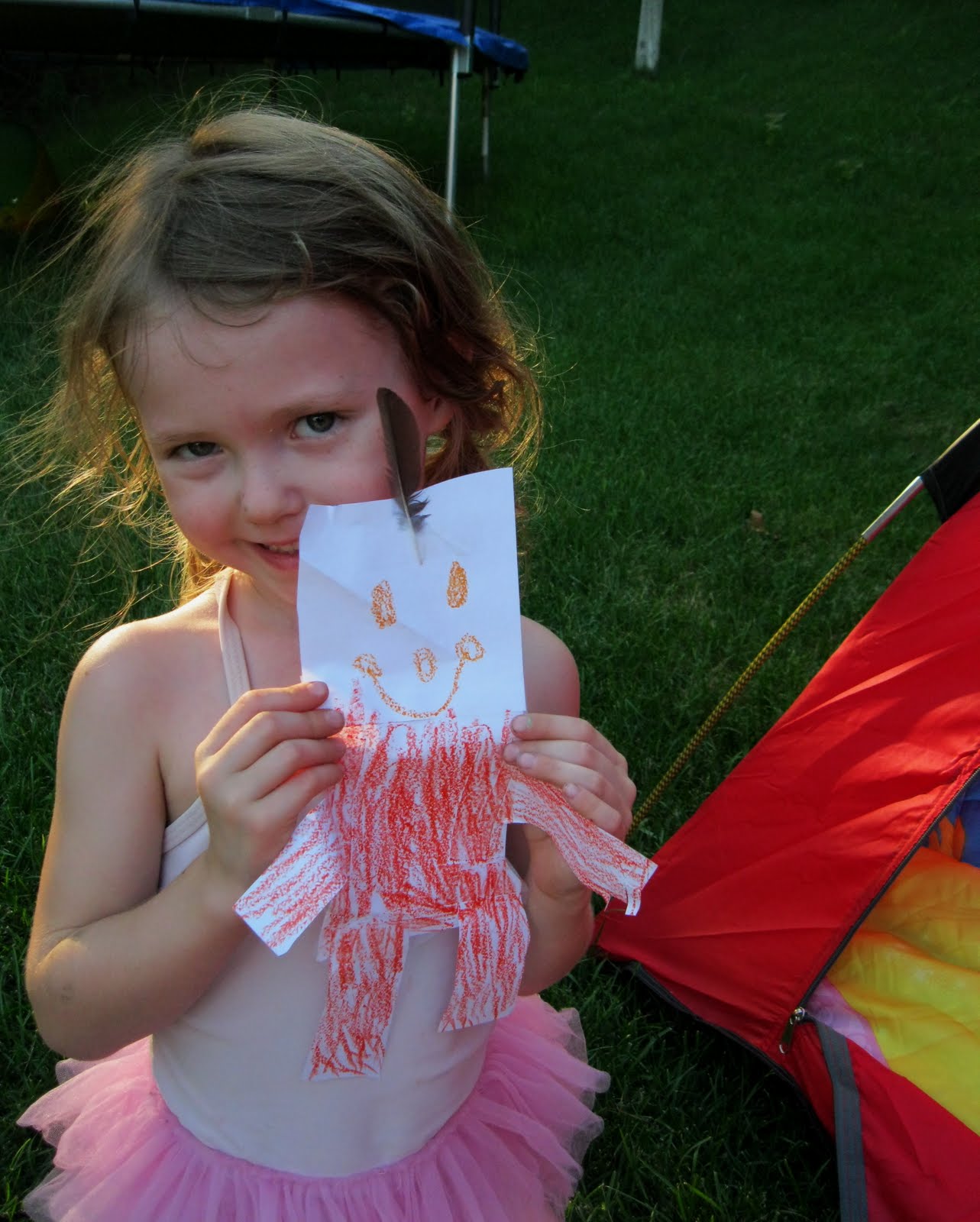 Zoe's favorite was a colorful design, and she also added a feather from nature.